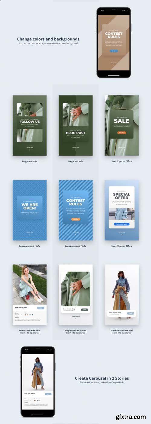 Length: 0:15, 0:15, 0:15, 0:15, 0:15, 0:15, Resolution: 1080x1920, File Size: 107MB, Media Placeholders: 7, Text Placeholders: 58