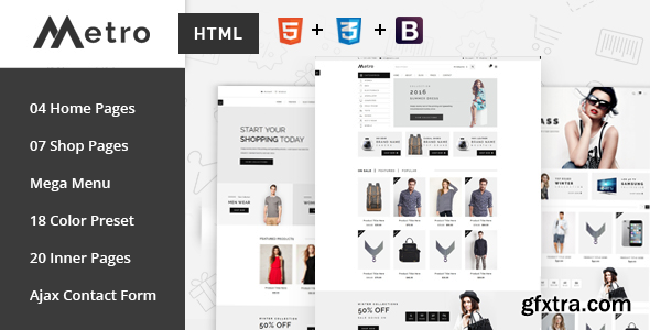 Metro – modern and clean E-Commerce HTML5 Template build for online store. The design is very elegant and modern, and also very easy to customize with 1170px grid. Metro template has beautiful and clean design that will be best suited for your online business.