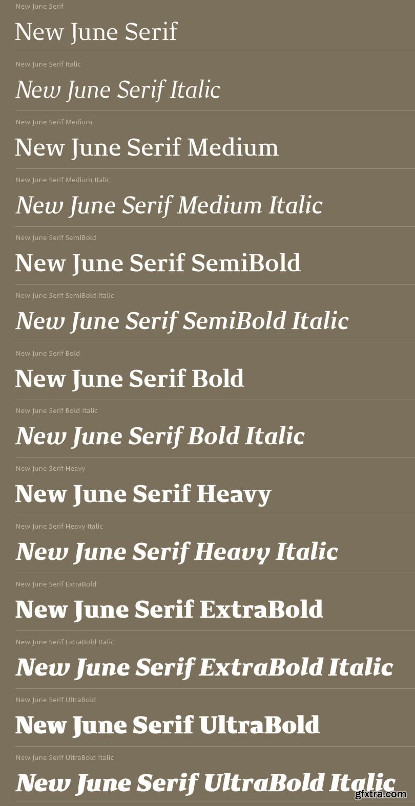 - The basic serif version of NewJune existed even before the sans, but only in Regular and Italic. Now I am finally very proud to present the Serif as a complete family with 7 weights.