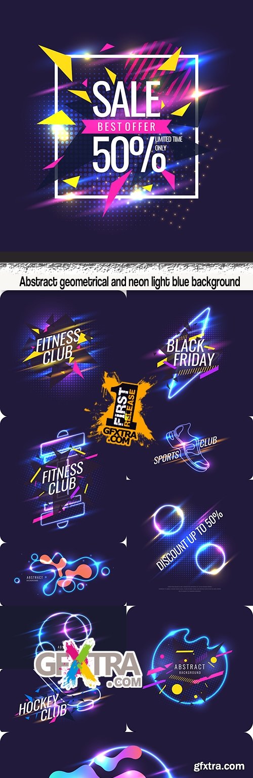 Abstract geometrical and neon light blue background