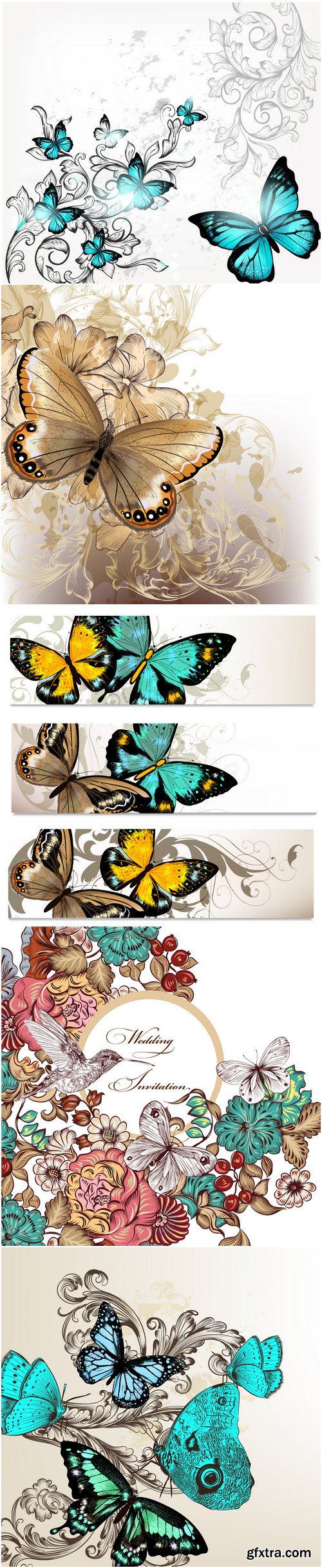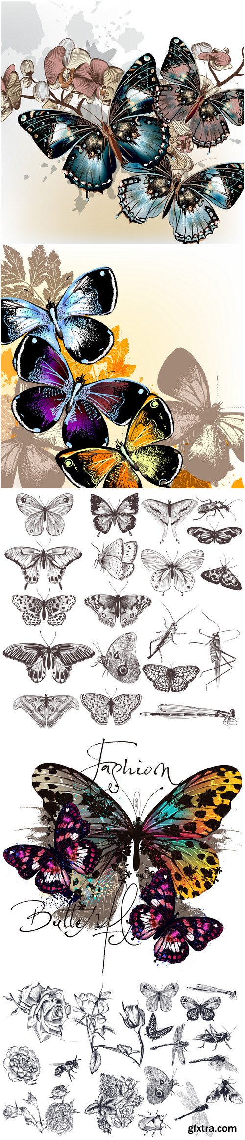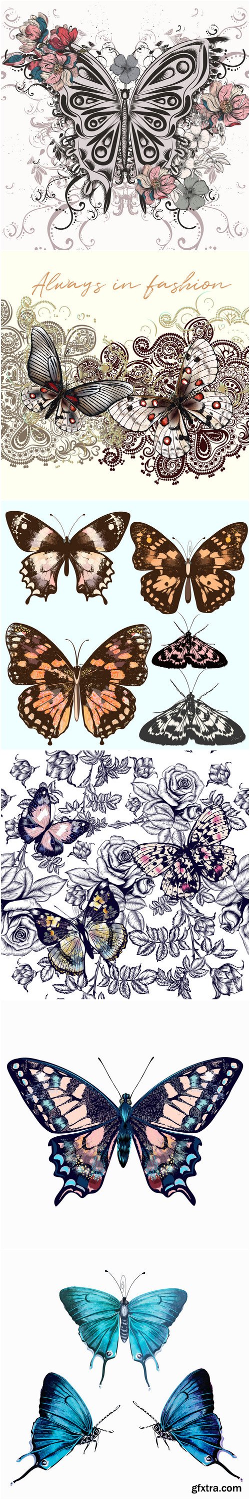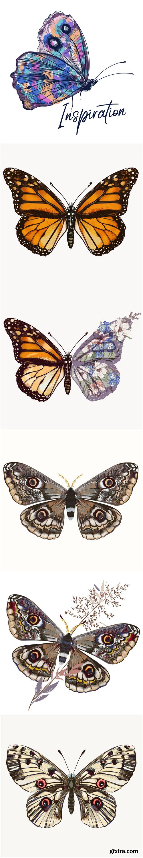 Butterflies and insects collection of 22 vector hand drawn detailed for design